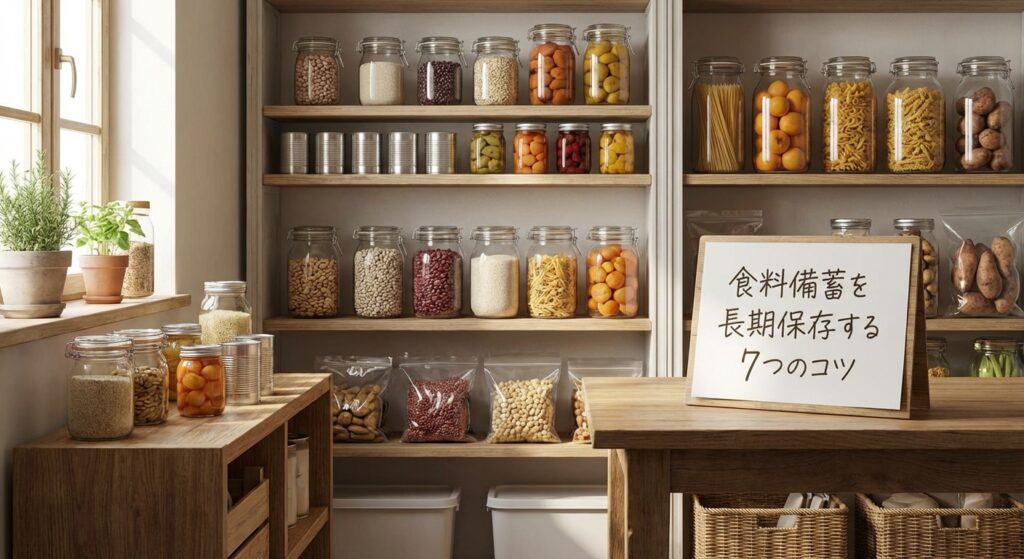 この記事では、実際に私が家族4人分の食料備蓄を3年間続けてきた経験をもとに、長期保存のコツをご紹介します。同じ悩みを持つあなたの参考になれば嬉しいです。